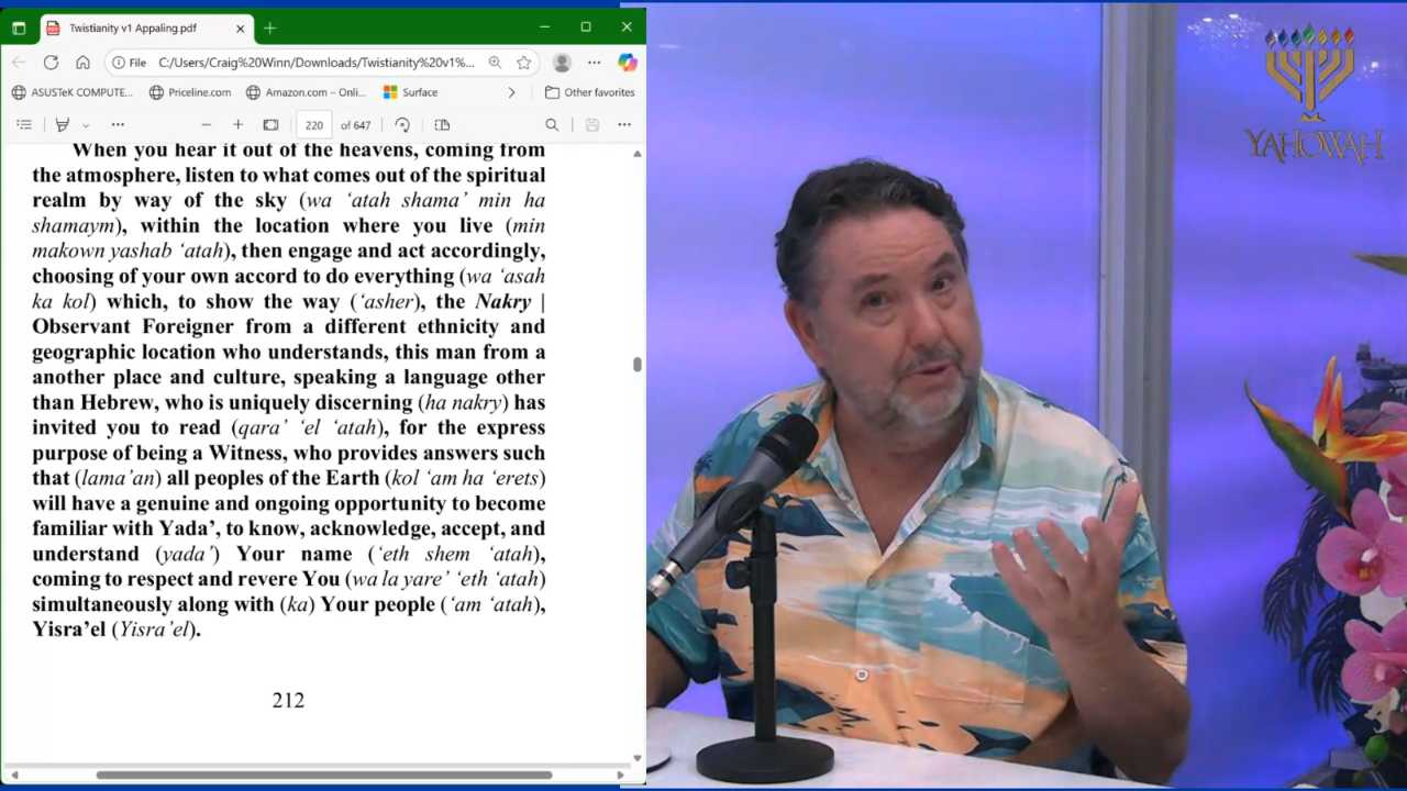 A Shabat Study of Yahowah's Torah. Join a group of Yah's family as we delve into the Towrah of God. We will expose religious corruption while more importantly espousing Yah's Torah truth. Hosted by the author of Yada Yahowah, An Introduction to God, Observations, Coming Home, Questioning Paul, God Damn Religion, and Tea with Terrorists.